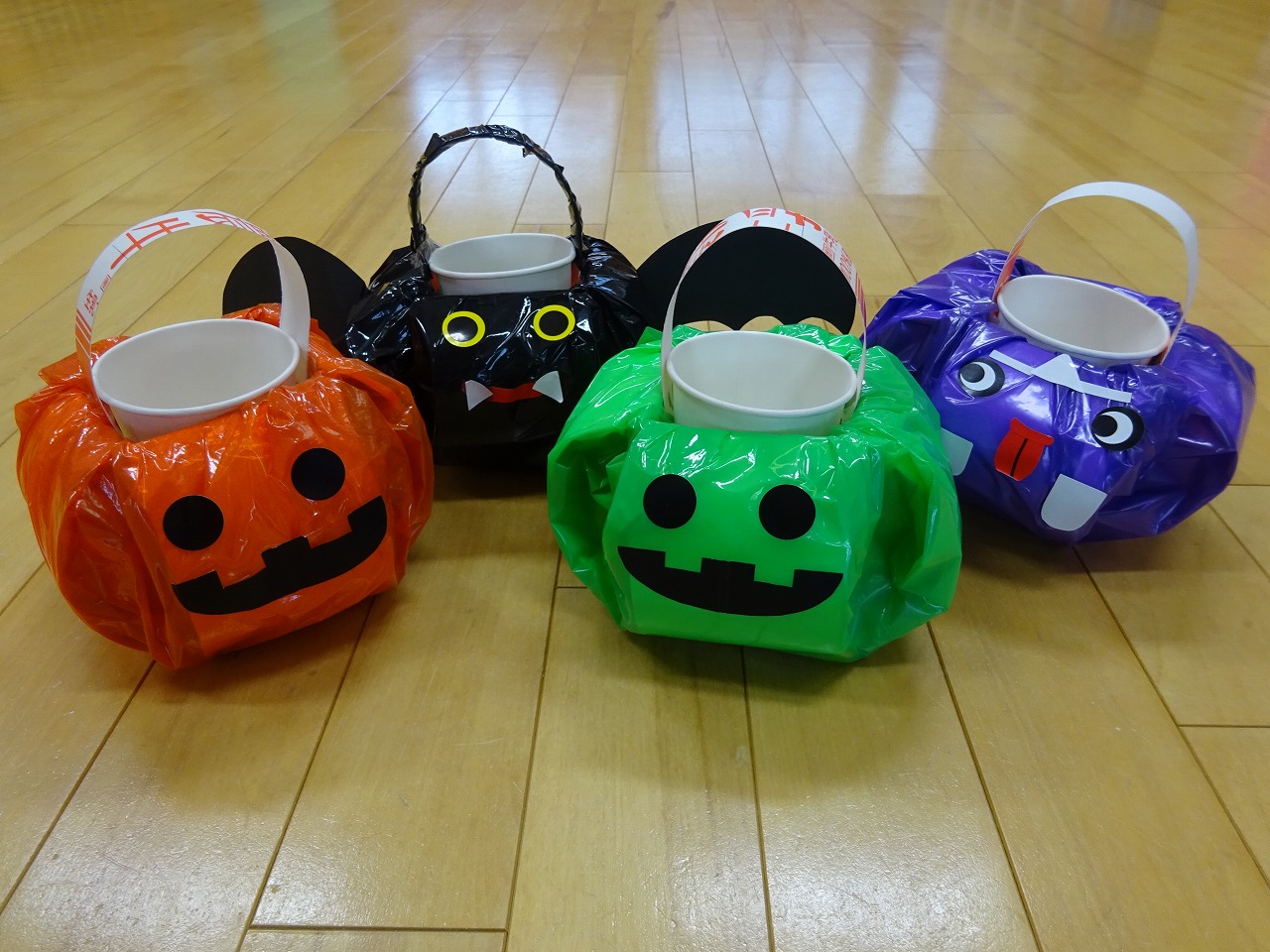 今月は、ペットボトルとカーペットを掃除する゛コロコロ゛を使って好きな動物を作り、紐をつけて室内をお散歩をしながら楽しく掃除が出来てしまうというなんとも可愛いらしいおもちゃの作り方を紹介しました。もう一つはハロウィンにちなんだお菓子入れです。どれもご自宅にあるもので簡単に作ることができます。是非親子で作って遊んでみてください。 |