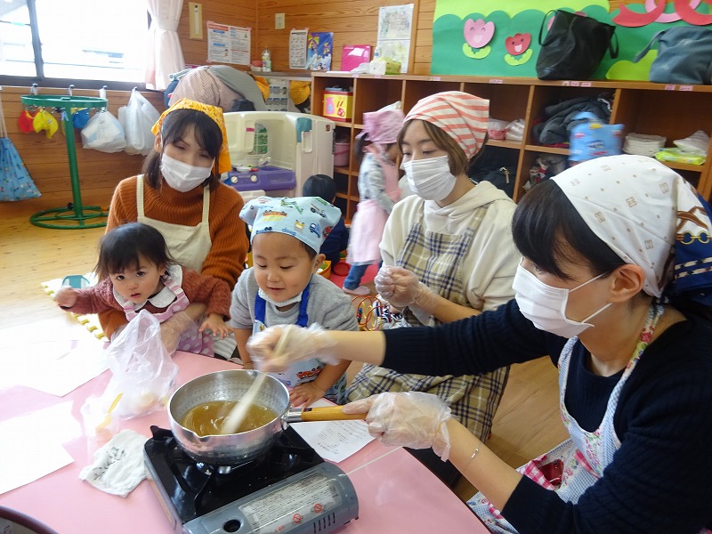 ミニ講座『郷土菓子を作ろう』を行いました。12組27人の参加がありました。講師の方をお招きして、飛騨地方の郷土菓子”げんこつ”の作り方を教えて頂きました。親子でコネコネ...あっという間にできました。できたてのげんこつが美味しくて、みんなにっこにこの笑顔になりました。 |
