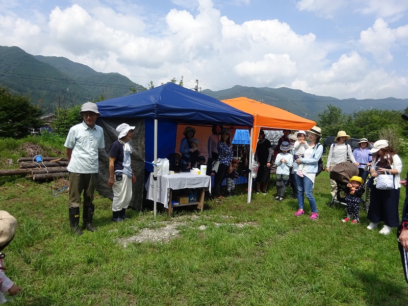 わかあゆ子育て支援センターとのコラボ企画、「森のニンジャで遊ぼう&まきまきパン」を行いました。15組33名の参加がありました。馬瀬にある森のニンジャでマイナスイオンを浴びながら、アスレチックや川遊び、木の棒にパン生地を巻きつけて炭火で焼いたまきまきパンと焼きおにぎりの味は格別でした。 |
