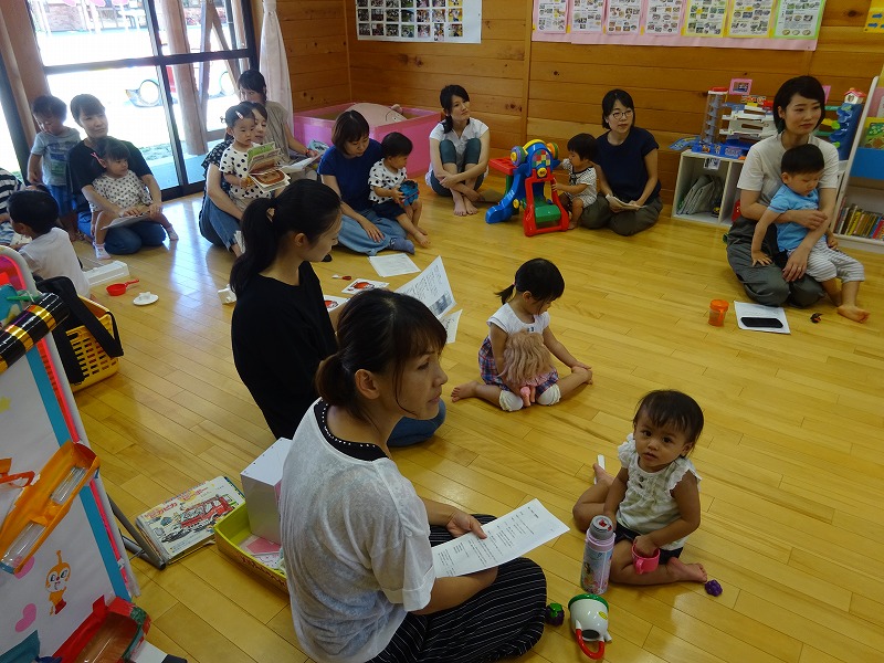 「イヤイヤ期」についてと題して、長江奈香保育士をお招きし、お話を頂きました。11組26名の参加がありました。この時期は、目には見えない所をはぐくんでいる大事な時期、貴重な時間を共に過ごしているんだという話を聞くと「どうして・・・」と悩まされていたお母さん方からは『気持ちが楽になりました」「子育てを楽しみたい」という感想が多く寄せられました。 |