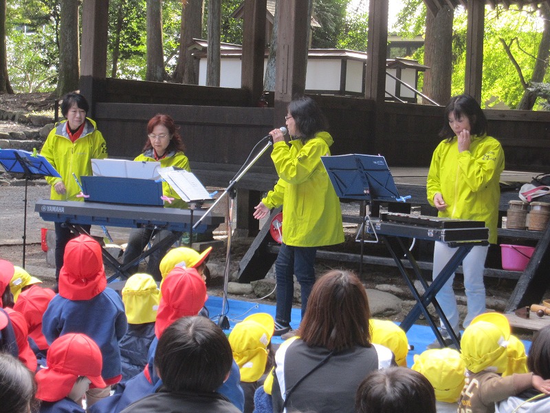 今回で6回目となる諏訪の森をお借りしての鎮守の森のコンサート。 今年も金山の音楽振興会の皆さんと一緒に地域の方々、未就園親子のみなさん、神主さん、みなみこども園の園児、総勢300名の歌声が諏訪の森に響きました。