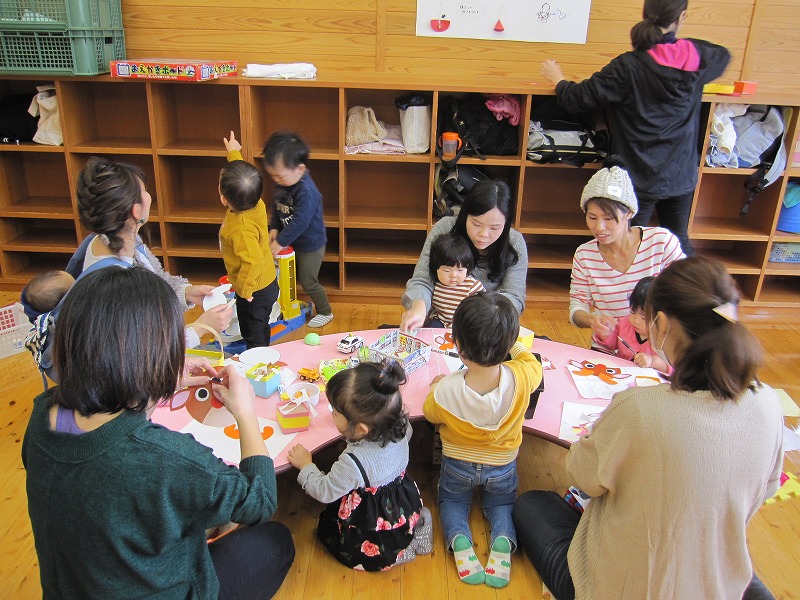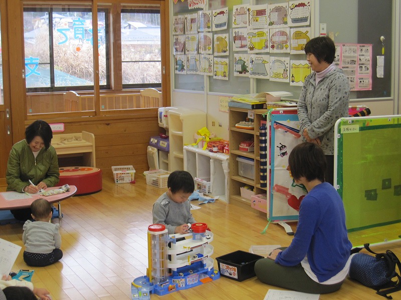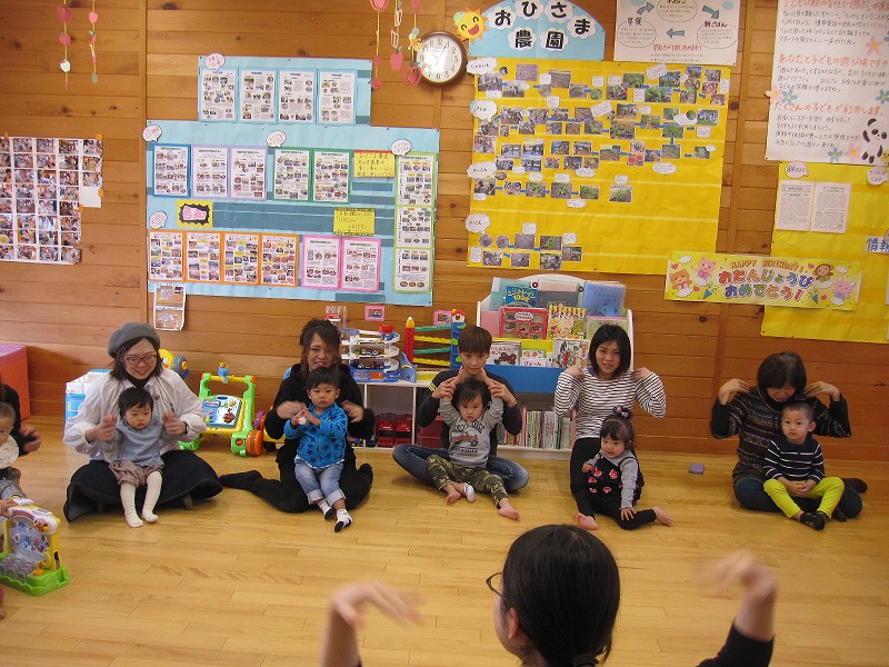 7組16名の参加がありました。 パネルシアター、手遊び、ふれあい遊びと、1歳から3歳になったおともだちが親子で楽しい時間を過ごしました。