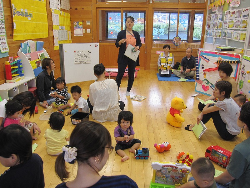 今回のぽっかぽっかDayは2本立てでした。参加された皆さんは保健師さんや防災士さんの話を真剣に聞いてみえました。おむつを外すには3つの条件が揃わなければならないことを詳しく話され、防災については日頃から防災意識を高めて家族で話し合っておくことが大切と話されました。アルファ米の非常食の試食も行いました。 |