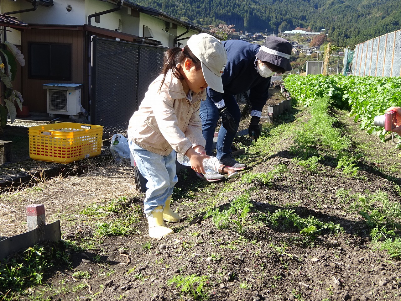 2023年10月17日 おひさま農園デー「だいこん、にんじんの水やり、だいこんの試し抜き」