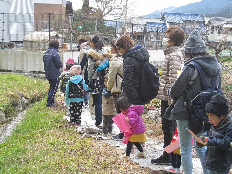 陽射しが弱く北風が吹いて寒い中でしたが、皆で上村の野道を歩いて行きました。春を見つけるたびに、みんなで一つのところに集まり、嬉しそうに喜びを分かち合っていました。つくし・ふきのとう、オオイヌノフグリ・アリ・たんぽぽなど沢山の春を親子で見つけ、幸せな時間を過ごすことが出来ました。 |