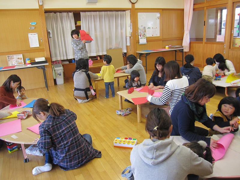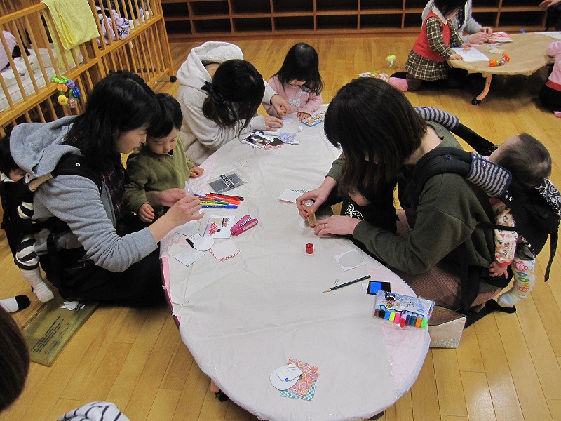 おひなさま作り1日目。今年度は、お人形の顔は写真を使用しました。お子さんが女の子の家は、お内裏様がお父さんだったり、息子さんがお内裏様でおひな様はお母さんだったり、または兄妹で兄弟で・・といろいろな組み合わせがあり、一つ一つ違った個性的な作品が並びました。 |