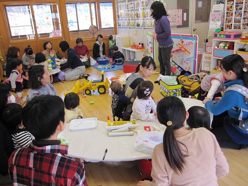 ぽっかぽっかDayで「離乳食」をテーマに、園の林加奈子栄養士にお話をしていただきました。7〜8ヶ月、9〜11ヶ月、12〜18ヶ月、3歳〜5歳と段階を踏んだ実物の展示と共にお話をしていただくことで、段階によって量・形状・硬さなどが変化していくことも、見て学ぶことが出来、とても良い時間となりました。 |