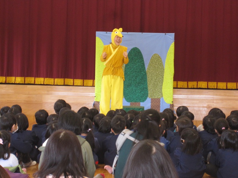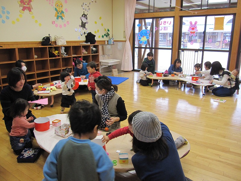 1月生まれの誕生会を行いました。手遊び、ふれあい遊びはニコニコ笑顔で楽しむことが出来ました。パネルシアターに次々と出てくる動物にどの子も釘付けとなり、歌や踊りもみんなで一緒に踊ることが出来、とてもアットホームな誕生会となりました。 |
