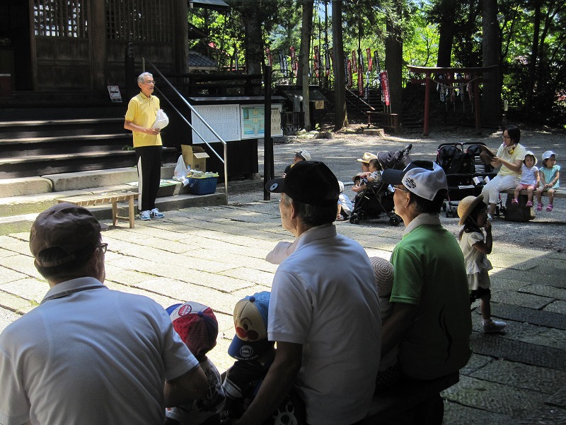 『ばあばとお散歩』に次ぐ第二弾、『じいじと遊ぼう』を諏訪の森で行いました。今井正勝先生を講師にお招きし、おすわさまの話を聞いたり、孫たちへ伝えたい遊び、一緒に楽しめる遊びを教えていただきました。宝探し・コロコロオリンピック・紙飛行機作り…どれも子どもたちは目を輝かせながら楽しめていました。木漏れ日の中でじいじと孫と過ごす時間は、優しくて心穏やかで素敵な空気に包まれていました。 |