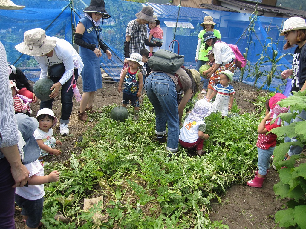 スイカが取れ頃を迎えていたので、急遽『臨時農園Day』として、スイカの収穫を行いました。 |