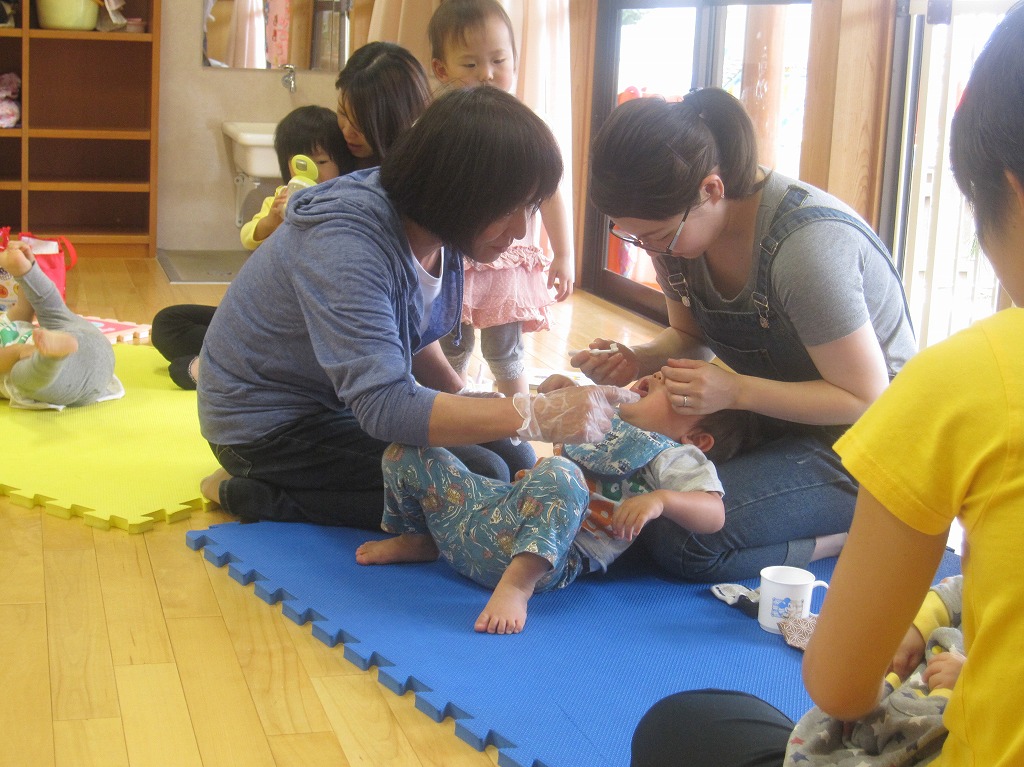 講師に歯科衛生士の熊崎ひとみさんをお招きして『歯について(ブラッシング指導)』を行いました。 |