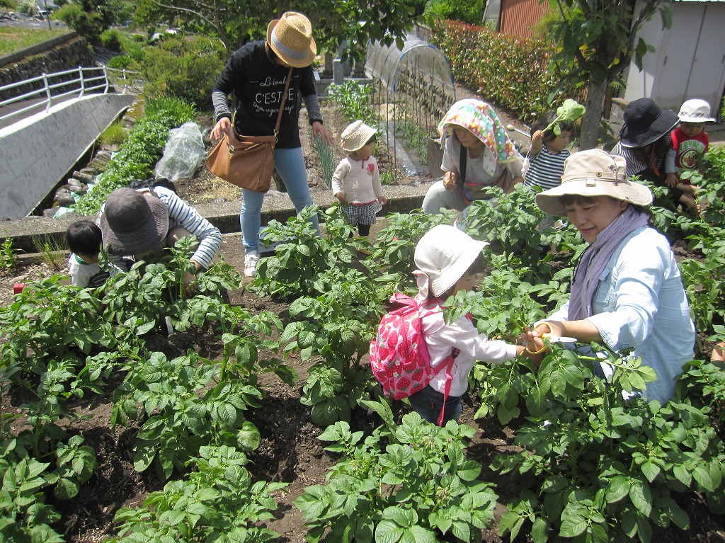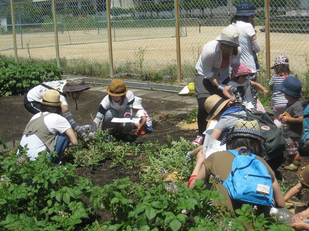 じゃがいもが大きくなってきたので、剪定のために『臨時農園Day』を行いました。 |