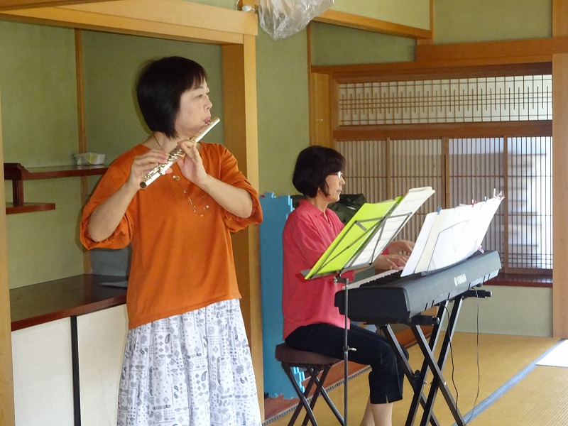 ピアノ&フルートの生の音色を楽しみにみえたのは13組の親子でした。曲はジブリや童謡、アニメ、ミュージカル曲と13曲を演奏してくださいました。幼い子が多かったので手拍子や体を揺らすことなどの大きな動きは少なめでしたがとても落ち着いて静かに聴いていました。音楽は大きな癒しになります。皆さん喜んでくださいました。 |