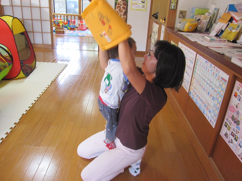 保健師さんにトイレトレーニングについてお話していただき、オムツ外しの時期やその時期は、一人一人違うこと、オムツの性能が良いことでオムツ外しが遅れていることを分かりやすく教えてもらいました。後半は「防災にし備えて」と題して赤ちゃんや幼児にとって備えておくべきことや物についてお話していただきました。非常食の試食もあり「おいしい」と親子で喜んで食べてみえました。防災について考える良い機会になりました。 |