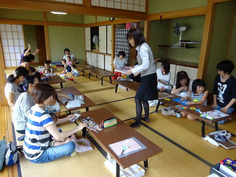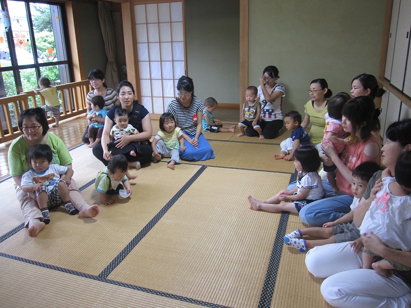 身近にあるうちわ、ビニール袋を使って風船やパラシュートを作り、親子で楽しく遊べる遊びを教えていただきました。また、素材の味で簡単にできる「豆乳小豆寒天」を作りました。甘くて美味しいデザートを喜んで食べてみえました。明聖先生から子育てで大切なことをお話していただいたり、悩み事を相談したりと、今後の子育てについて考えたり学んだりすることが出来ました。 |