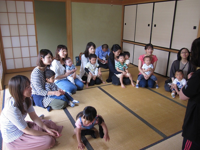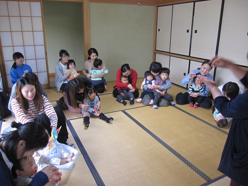 5月に2歳の誕生日を迎えた男の子と親さんの3組6名の参加でした。手遊びやパネルシアターはお母さんの膝できょとんとして見ていましたが、ローソク消し・手形押し・身体測定は興味津々で喜んでやってくれました。同年代なのでこどもたちも少し関わって遊び、お母さんたちは会話をしながら楽しい会となりました。 |