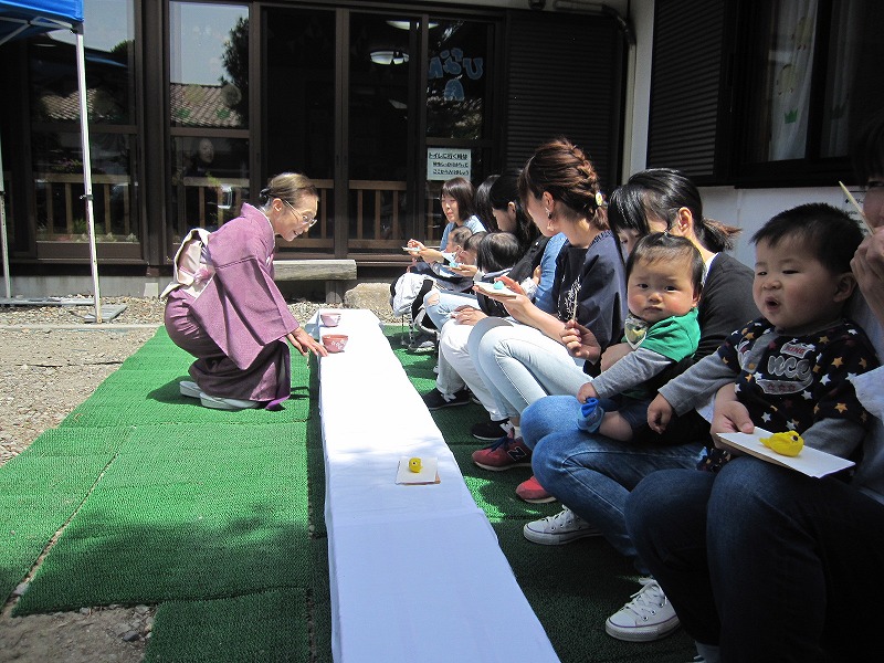 14組28名の方が参加し、3グループに分かれてあねかえし作りを行いました。もち草をすったり、生地をあねかえしたり、力のいる作業を先生に教わりながら、各グループで協力しあって作ってみえました。子どもたちも親さんの姿を興味津々で見たり、少しお手伝いをしたりして参加してくれました。鮮やかな色のあね返しが出来上がり、各グループで交流しながら「美味しい」と嬉しそうに食べてみえました。 |
