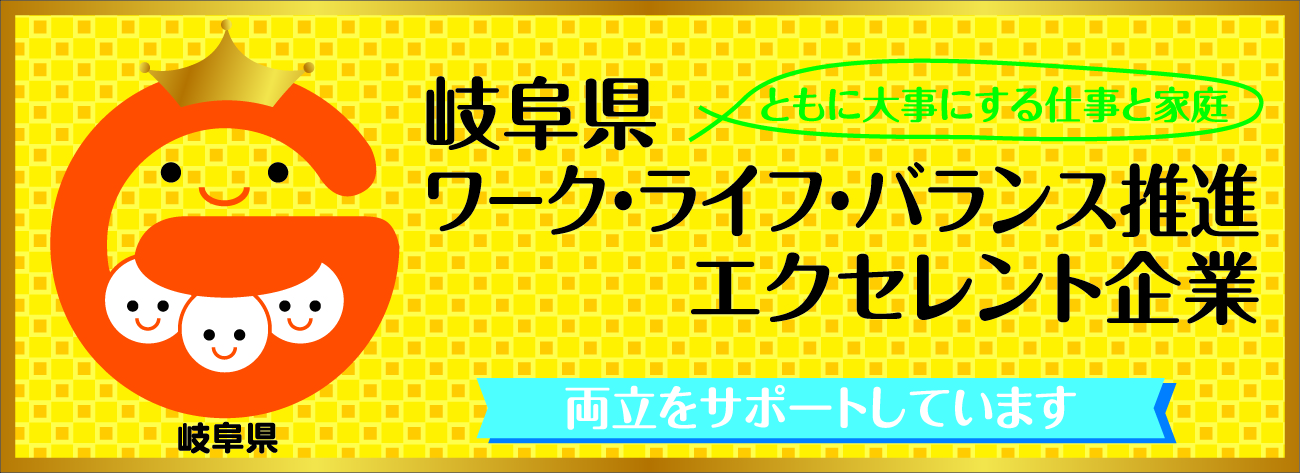 2021年2月15日 令和2年度の岐阜県ワーク・ライフ・バランス推進エクセレント企業に認定されました。