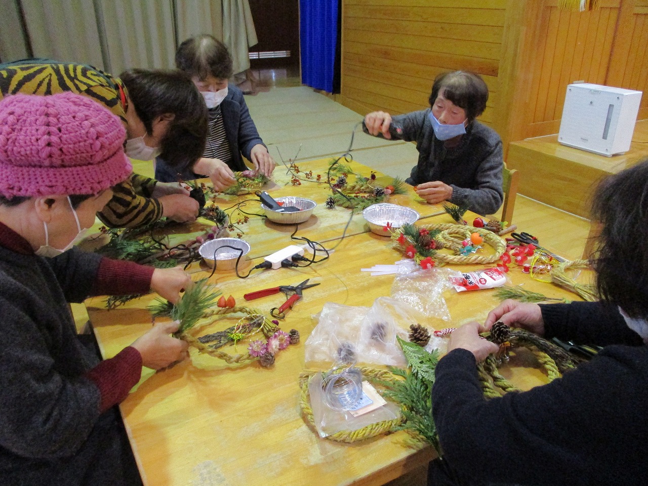 毎週水曜日にほのぼの館を利用される地域の方々と一緒にしめ縄飾り作りを行いました。