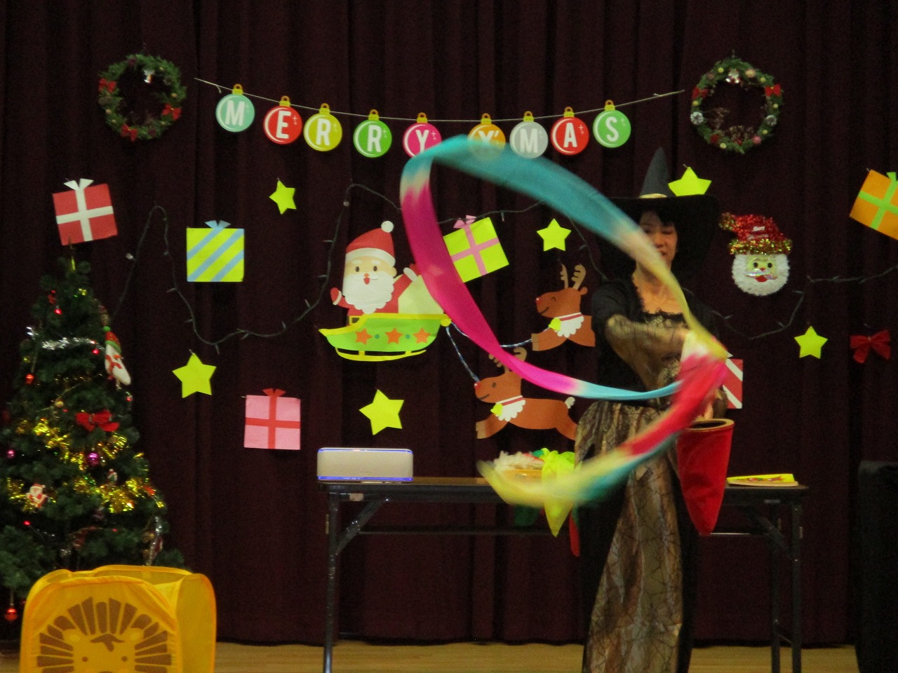 お楽しみは熊崎淑さんによるマジックショーが行われ、子ども向けに分かりやすいものから大人もびっくりする本格的なマジックが幾つもで楽しく観ることができました。マジックショーの余韻が残る中、サンタさん登場。