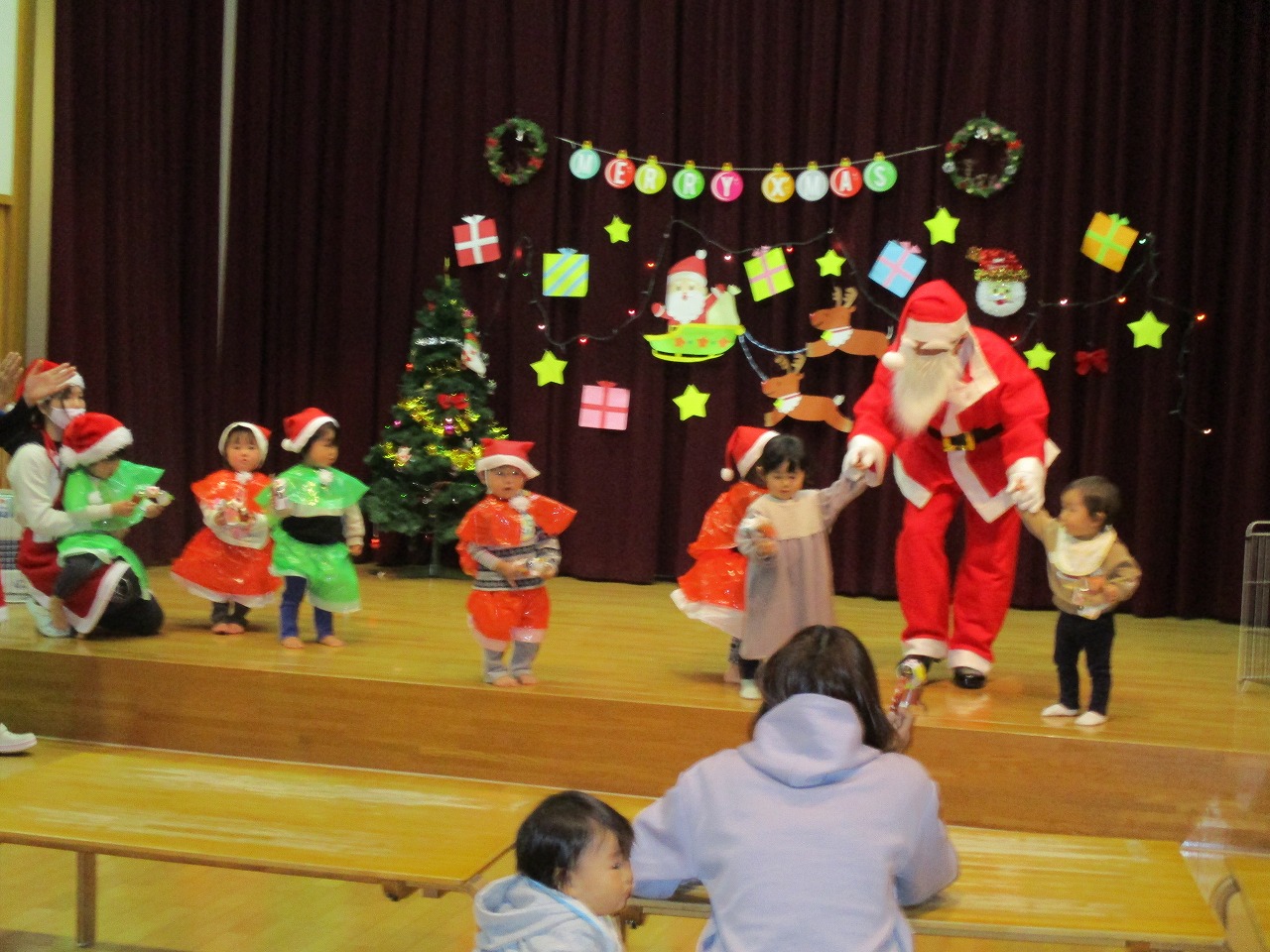 そして、22日遊戯室でクリスマス会を行い8組の親子と未満児さんも参加しました。