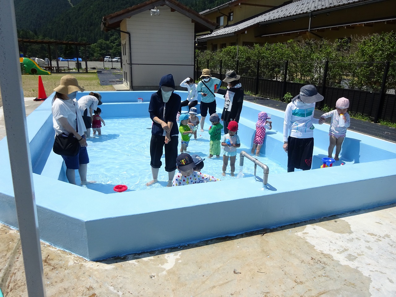 萩原子育て支援センターとコラボ「プールであそぼう」の2回目を行いました。
