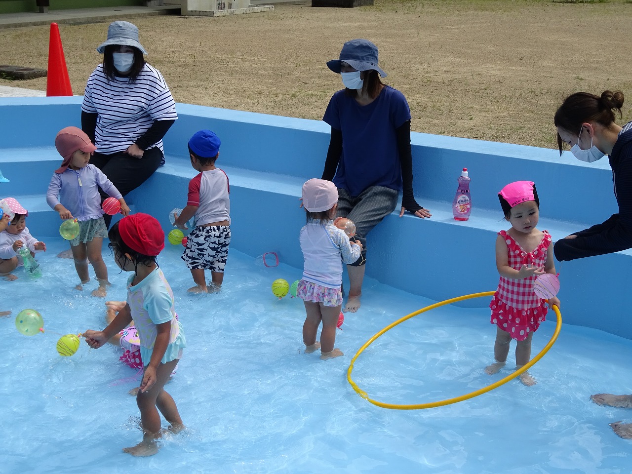 乳幼児学級(あゆっこくらぶ)プールあそびを行いました。