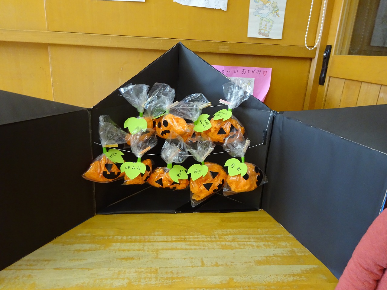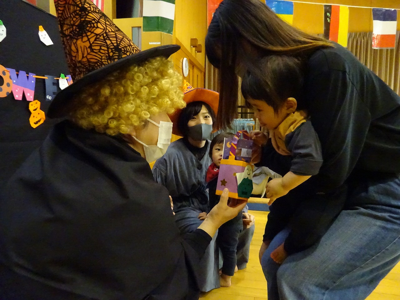 最後にお母さん方が準備されたお菓子を魔女からもらいました。怖がって泣く子もいなくみんな喜んでもらってくれたので良かったです。