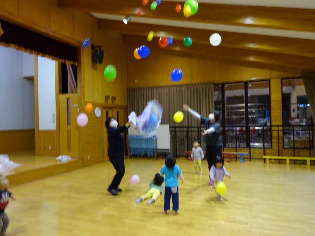 親子ふれあいあそびを遊戯室で行いました。