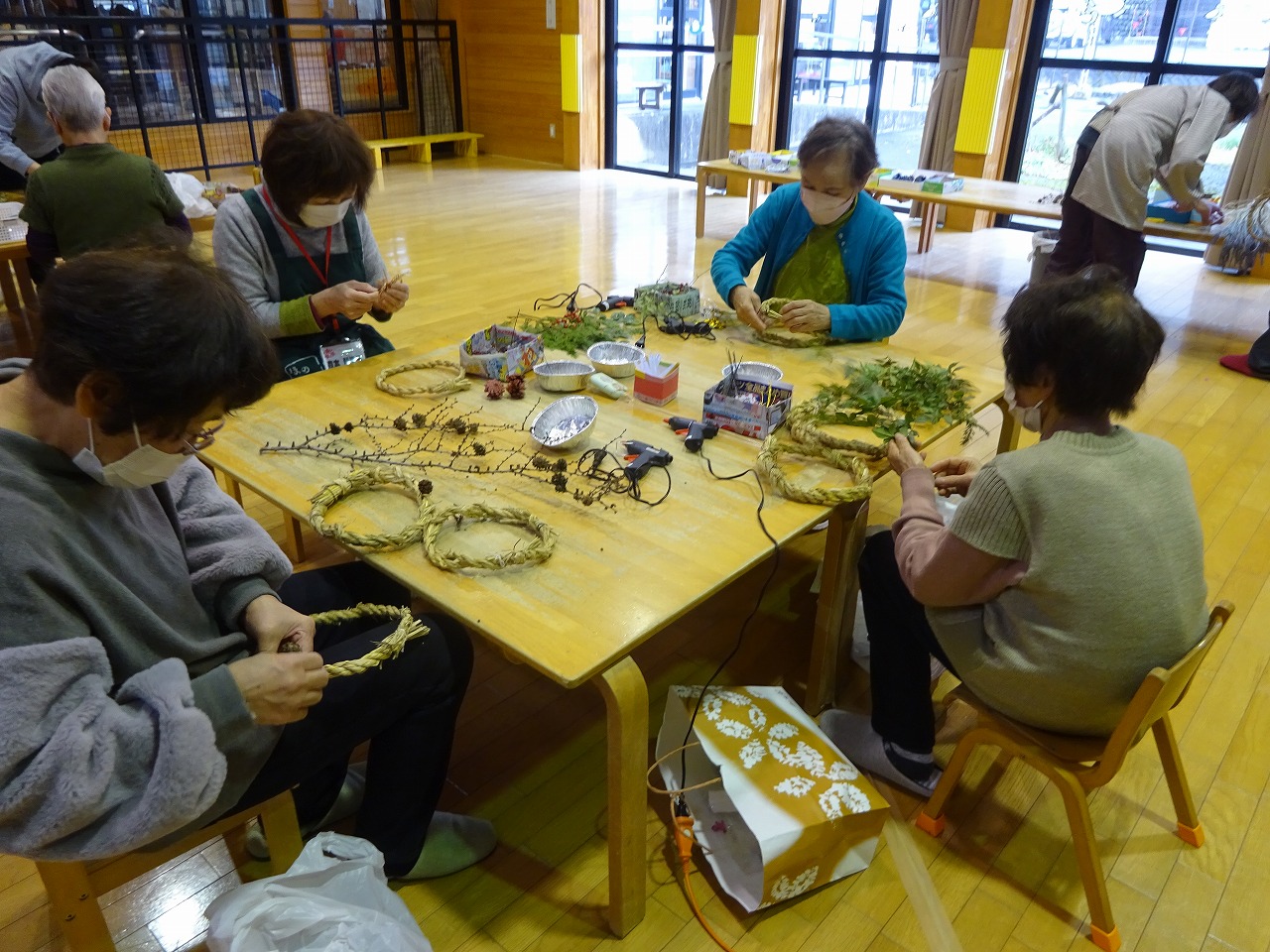 ほのぼの館の利用者さんが、作ってくれたしめ縄に飾り付けをしました。
