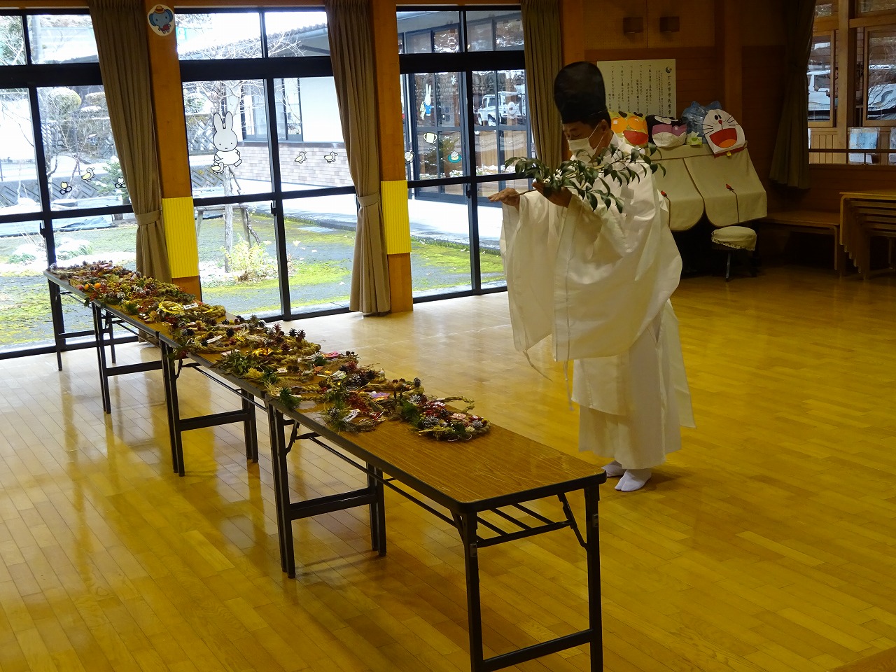 利用者さんも自分達が綯ったしめ縄に飾るのは楽しい、難しい、どうにか作ることができ年末年始の楽しみという感想がありました。今年は神主さんにお祓いをしてもらいました。有難く感じる世界に1つしかないしめ縄を飾って新しい年を迎えてもらいたいと思います。