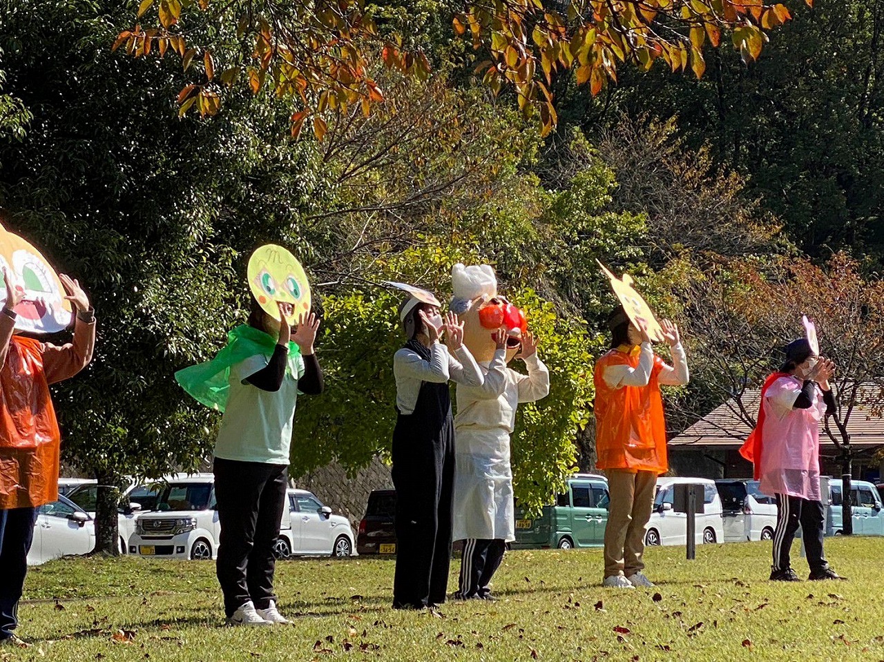 参加者は70組89人 青空の下たくさんの親子が集まってくれました。 コーナーを回るとアンパンマンのアイテムがもらえアンパンマンに変身していき、最後はバイキンマン、かびるんるんをパンチで倒すというウォークラリーでした。大きめに作った担当者のお面が怖く泣いてしまう子どもたちもいましたが、アンパンマン体操をみんなで踊り、とても楽しい時間を過ごすことができました。また、来年度も企画したいと思います。