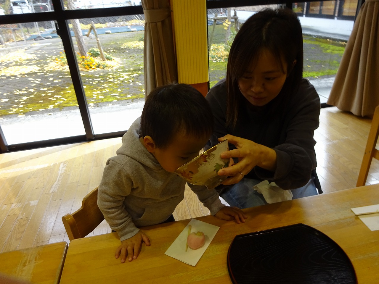 マナーを教えてもらったり、自分でたてる体験もしました。ねりかし(さざんか)も美味しく子どもたち喜んで食べ抹茶も平気で飲みました。なかなか抹茶を飲む機会がないのでみなさんとても喜ばれました。