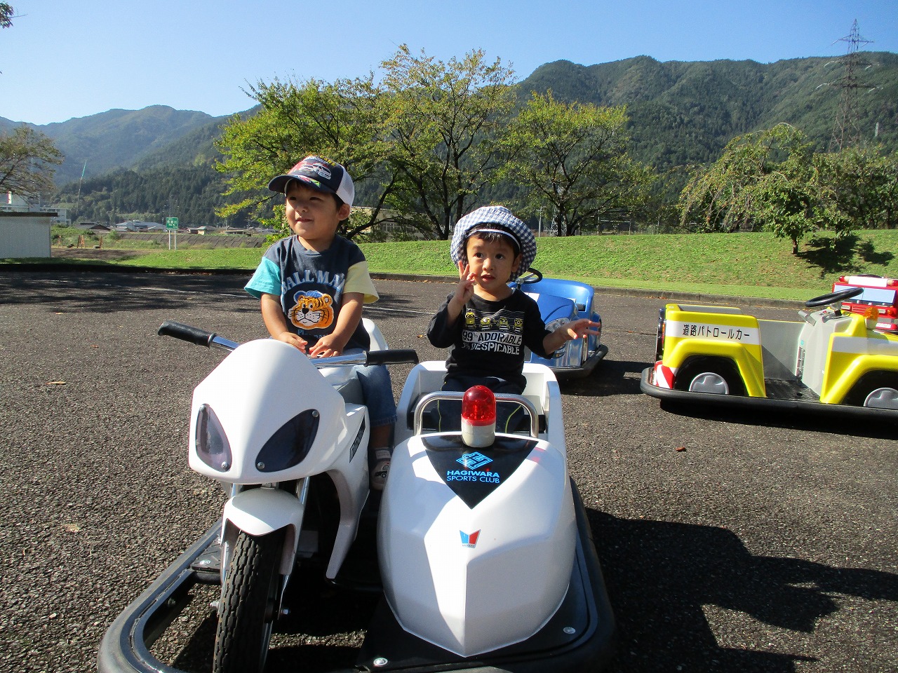 良い天気となり、バスに乗って飛騨川公園へ!始めに公園内を散歩するとどんぐりがいっぱい落ちていたのにこどもたちは全く興味がなく…いつもと違う景色に「アッ!」と反応したり芝生の坂道を走ったりして大はしゃぎでした。公園の職員の方のご厚意でバッテリーカーにも乗せてもらい、たくさんの遊具でいっぱい遊んで大喜びでした!そして待ちに待ったお弁当!!公園の木陰でニコニコして食べる表情がとっても可愛らしかったです♡帰りのバスは大型バス!疲れたけれど楽しい遠足になりました。