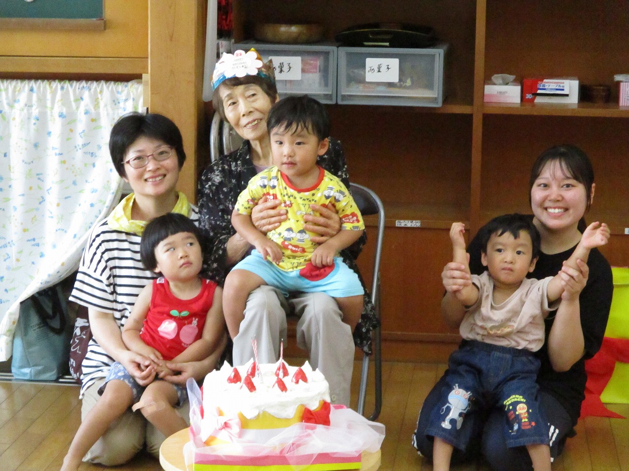 11月はほのぼののおばあちゃんが誕生日を迎えられました。インタビュー「どんなお仕事をしていたの?」では「今でも旅館のお仕事に行っています!」ととってもお元気なおばあちゃんでした。お楽しみは「風船シールラリー」ほのぼの館の方とグループを作ってコーナーを回り、風船にパーツを貼って行きました。最後は面白い顔の風船人形ができあがり!みんなで笑って楽しかったね! |