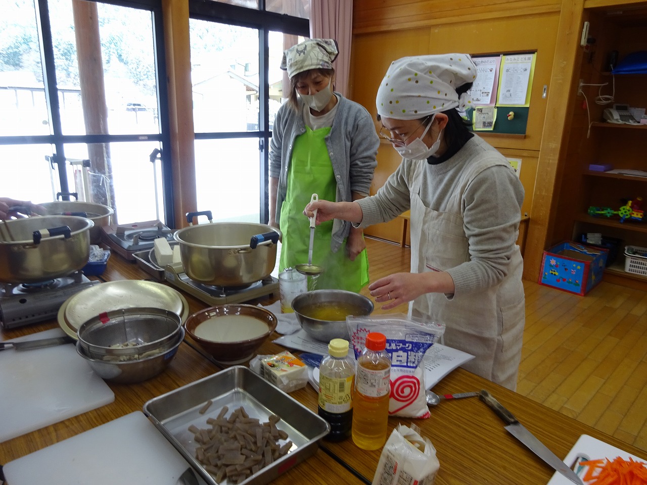 畑の大根をおでんに煮込み、ヘルスメイトさんに簡単料理を教えて頂きました。 |
