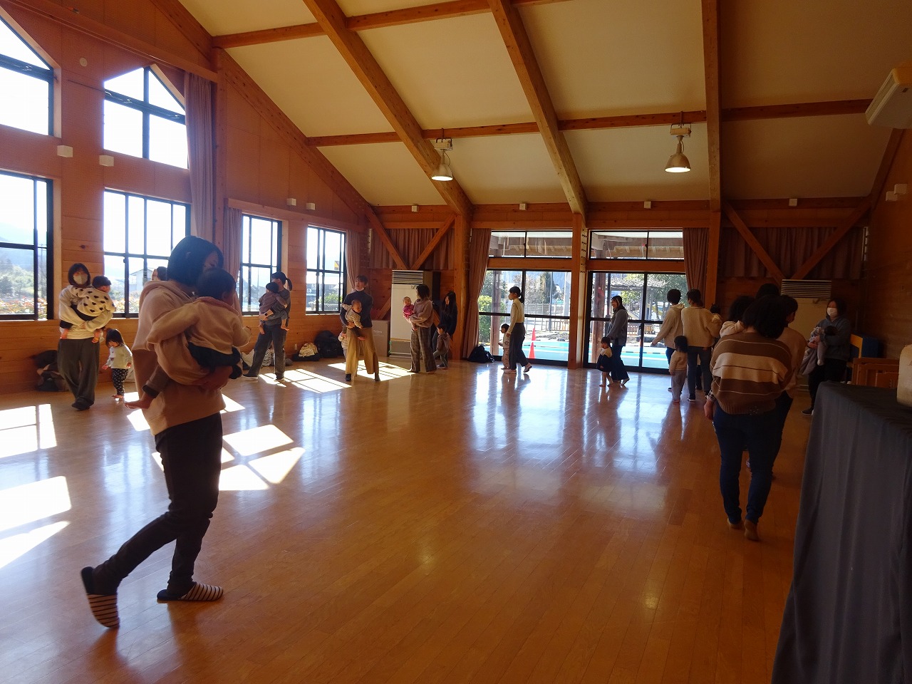 みなみこども園の遊戯室でリトミックを行いました。 |